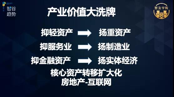 第一個判斷,遏制輕資產(chǎn)的發(fā)育,支持重資產(chǎn)。