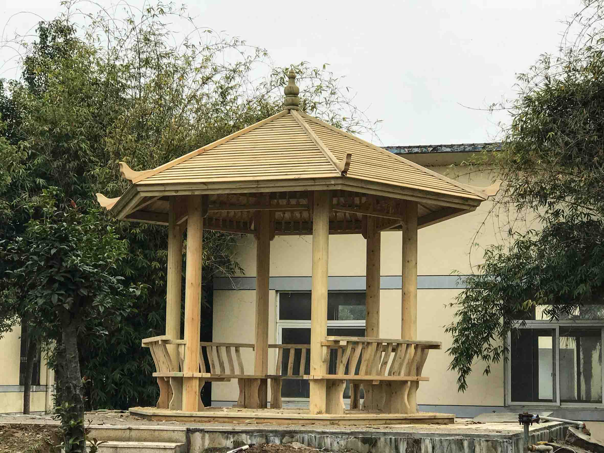 在保持原有景觀基礎(chǔ)上,增加了古色古香的木亭,富有野趣的石桌石凳,原有的噴泉假山也煥然一新。在綠化方面,增加了造型優(yōu)美的樹樁,蒼翠欲滴的竹子等。改造后,整個景觀大幅度提升。